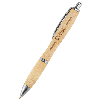 Bambus-Kugelschreiber Attraktiv mit einseitiger LasergravurHochwertige LasergravurHochwertiger Bambus-Kugelschreiber mit Metallclip.Maße: ø13×140 mmGewicht: 11 gMaterial: Bambus / MetallGravurfläche: 50 x 6 mmDruckdatenvorgaben: siehe Datenblatt / Dateivorlage...