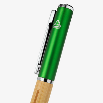 Bambus-LED-Kugelschreiber mit einseitiger LasergravurHochwertige LasergravurHochwertiger Drehkugelschreiber aus Bambus und recyceltem ABS-Kunststoff mit integrierter LED-Taschenlampe inklusive Knopfzellenbatterie.Maße: ø12×147 mmGewicht: 15 gMaterial: Bambus / Recycelter ABS-...