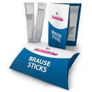 Bei Ihrer Online-Druckerei haben Sie die Wahl, ob Sie die Getränkepulversticks einzeln oder als 10er-Set als Werbemittel einsetzen möchten. Wenn Sie sich für einzelne Energy- & Brausesticks entscheiden, befestigen wir die Give-aways mit einem Klebepunkt auf einem Faltblatt. Der 4-Seiter ist auf DIN A7 gefalzt und besteht aus 250 g/m² starkem Papier, welches wir 4/4-farbig für Sie bedrucken. Bei dem aus zehn Sticks bestehenden Set bedrucken wir eine edle Kissenverpackung außen mit Ihrem Wunschmotiv. Die Verpackung besteht aus 0,40 mm dickem Postkarten-Chromokarton mit einer Grammatur von 260 g/m² und misst 17,8 x 22,8 cm. Bei beiden Varianten bestimmen Sie allein das Motiv: Ob Ihr Firmenlogo und die Farben Ihres Corporate Designs, ein flotter Spruch oder ein zum Anlass passendes Design – wir realisieren Ihre Getränkepulver-Give-aways nach Ihren Vorstellungen!