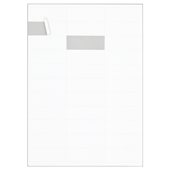 Unbedruckte Etiketten auf DIN-A4-BogenEtiketten 7 x 2,54 cm (33 Etiketten /Bogen)Pro Packung: 100 Bogen à 33 Etiketten = 3300 EtikettenEtikettenformat: 7 x 2,54 cmBogenformat: 21 x 29,7 cmMaterial: Indoor: 65 g/m² Haftpapier weiß matt auf Kraftpapier- Nachträglich bed...