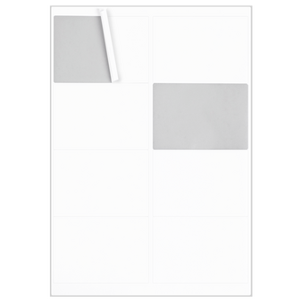 Unbedruckte Etiketten auf DIN-A4-BogenEtiketten 9,91 x 6,77 cm (8 Etiketten /Bogen)Pro Packung: 100 Bogen à 8 Etiketten = 800 EtikettenEtikettenformat: 9,91 x 6,77 cmBogenformat: 21 x 29,7 cmMaterial: Indoor: 65 g/m² Haftpapier weiß matt auf Kraftpapier- Nachträglich...