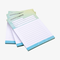 Gesprächsnotizblock, DIN A6, 200 Blatt, 4/0 farbig einseitig bedruckt80g/qm Naturpapier weiß (beschreib- und bestempelbar, PEFC)4/0 farbig einseitig bedrucktRückpappe grau (400g)Endformat: 10,5 cm x 14,8 cmDatenformat: 11,1 cm x 15,4 cmDie optional auswählbare Lochung wir...