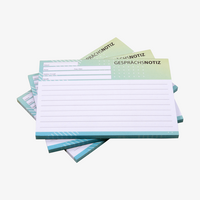 Gesprächsnotizblock, DIN A6 quer, 10 Blatt, 4/4 farbig beidseitig bedruckt80g/qm Naturpapier weiß (beschreib- und bestempelbar, PEFC)4/4 farbig beidseitig bedrucktRückpappe grau (400g)Endformat: 14,8 cm x 10,5 cmDatenformat: 15,4 cm x 11,1 cmDie optional auswählbare Lochu...