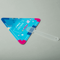 Handfächer in Dreieck-Form mit Griff, beidseitig 4/4-farbig bedruckt