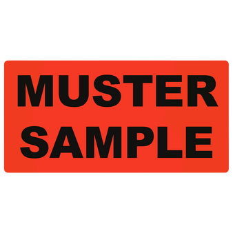 Hinweisetiketten MUSTER (10 x 5 cm)Pro Rolle: 1000 Stück/Etiketten1/0-farbig bedruckt (einseitig schwarz)Rotes, einseitig gestrichenes Leuchtfarbenpapier 76 g/m²Endformat: 10 x 5 cmRollendurchmesser: 3 Zoll (ca. 76 mm)Etiketten außenliegend auf Rolle, Fuß voraus, perm...