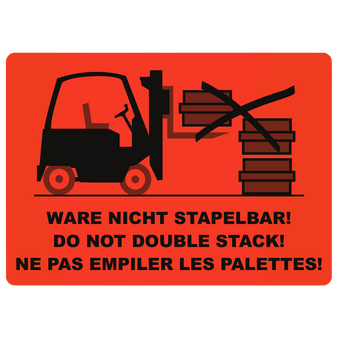 Hinweisetiketten NICHT STAPELN (21 x 15 cm)Pro Rolle: 820 Stück/Etiketten1/0-farbig bedruckt (einseitig schwarz)Rotes, einseitig gestrichenes Leuchtfarbenpapier 76 g/m²Endformat: 21 x 15 cmHinweis: Das Trägermaterial ist zwischen den einzelnen Etiketten perforiert....