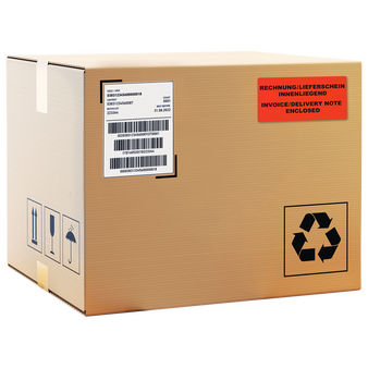 Hinweisetiketten RECHNUNG/LIEFERSCHEIN INNENLIEGEND (10 x 5 cm)Pro Rolle: 1000 Stück/Etiketten1/0-farbig bedruckt (einseitig schwarz)Rotes, einseitig gestrichenes Leuchtfarbenpapier 76 g/m²Endformat: 10 x 5 cmRollendurchmesser: 3 Zoll (ca. 76 mm)Etiketten außenliegend...