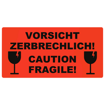 Hinweisetiketten ZERBRECHLICH (5,08 x 2,54 cm)Pro Rolle: 1000 Stück/Etiketten1/0-farbig bedruckt (einseitig schwarz)Rotes, einseitig gestrichenes Leuchtfarbenpapier 76 g/m²Endformat: 5,08 x 2,54 cmRollendurchmesser: 3 Zoll (ca. 76 mm)Etiketten außenliegend auf Rolle,...