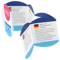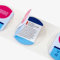 Hochwertige leporellogefalzte Etiketten auf Rolle rund (5,2 cm Ø), 10-seitig60µ PP Folien, Booklet 80 g Bilderdruckpapier weiß glänzendHochwertige Mehrlagige-Etiketten in Ihrer Wunschmenge bis zu 300.000 Stück, auf Rolle rund (5,2 cm Ø), 10-seitigBasis-Folie: 0/0-farbig (unbedruc...