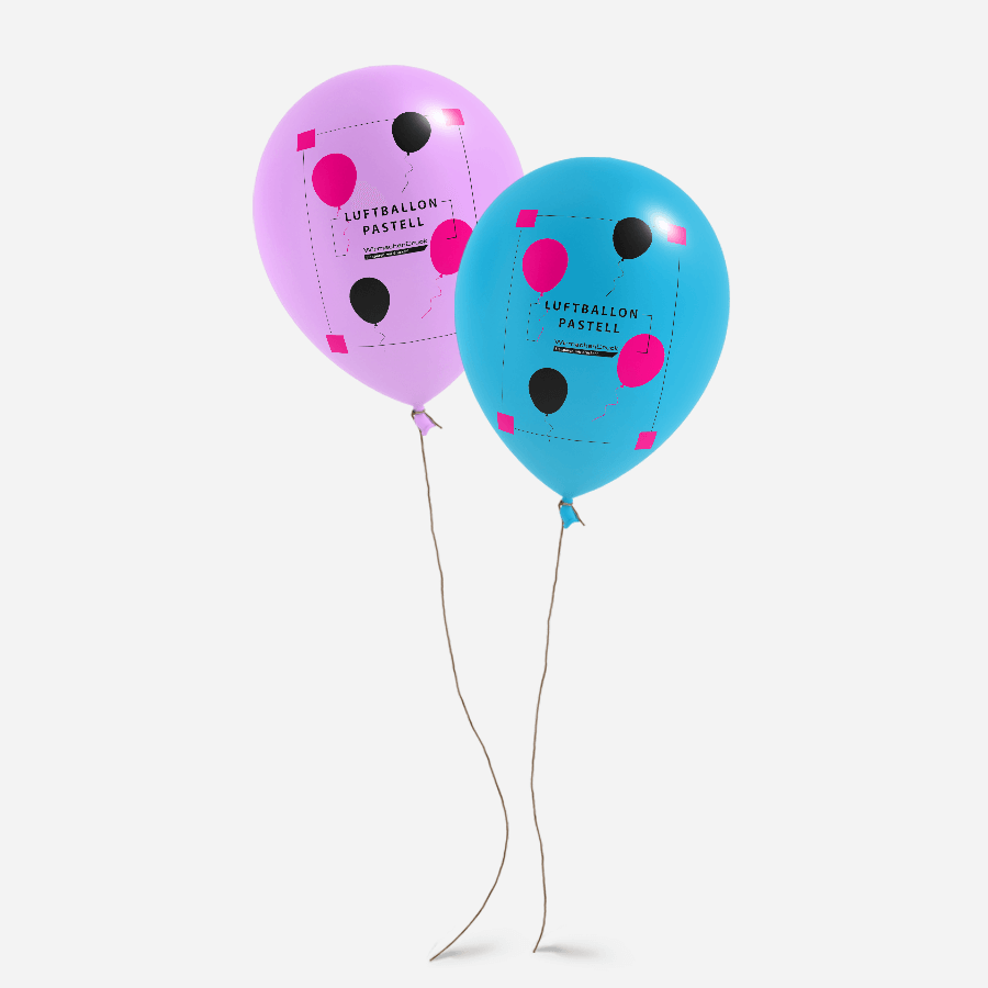 Um Ihren Pastell-Luftballons Ihren ganz persönlichen Stempel aufzudrücken, können Sie zwischen einer ein- oder zweiseitigen Bedruckung in Weiß, Schwarz, einer Pantone- oder einer HKS-Farbe wählen. Sie können sich nicht für eine Farbe entscheiden oder haben ein zweifarbiges Logo? Macht nichts: WIRmachenDRUCK realisiert Ihre Pastell-Ballons auch mit 2/0-farbigem oder 2/2-farbigem Druck zu knallharten Tiefpreisen. Bei einem einfarbig bedruckten Ballon steht Ihnen für Ihr Design eine Fläche von 123 x 110 mm zur Verfügung, bei zweifarbigem Druck beträgt die Fläche 132 x 100 mm. Ihre selbst gestalteten Werbeballons in Pastell-Optik haben wir außerdem in zwei verschiedenen Größen im Sortiment: Bestellen Sie ganz nach Ihren Vorlieben Pastell-Ballons mit 27 cm oder 30 cm Durchmesser.