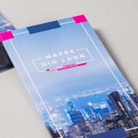 Hochwertige Mappe für DIN lang, 2-teilig mit 2 Laschen, 4/4 farbig (Außen- und Innenseite bedruckt)0,40 mm starker Chromokarton 255g für 1mm Mappen-Füllhöhe (zertifiziert mit PEFC-Siegel für Nachhaltigkeit), hohe Steifigkeit mit 1,6-fachem VolumenDatenformat: 26,7 x 26,2 cmEndformat: 25,...