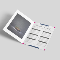 Speisekarte, gefalzt auf DIN A4, 4-seiter170g hochwertiger Qualitätsdruck beidseitig folienkaschiert glänzendEndformat: 42,0 cm x 29,7 cmgefalztes Endformat: 21,0 cm x 29,7 cmDatenformat: 42,6 cm x 30,3 cmFalz von links nach rechts in mm: 210-210Diese Auflage wird im hoch...