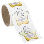 Unsere Etiketten, stark haftend sowie langlebig, erhalten Sie auf einer praktischen Rolle. Der Rollendurchmesser beträgt 3 Zoll (circa 76 mm). Weitere Etiketten auf Rolle drucken wir ebenfalls.