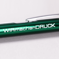 Alle Kugelschreiber gleiches Motiv: Aluminium Kugelschreiber mit edlen Chromringen an der Griffzone